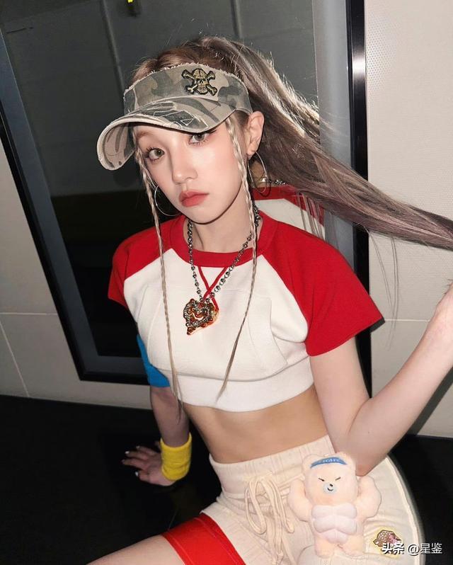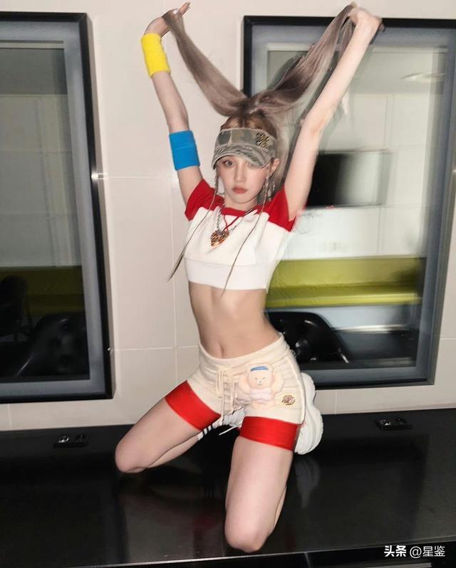 她选的红白插肩袖短上衣太懂显高小心机了,经典的棒球服配色自带复古滤镜,短款版型刚好卡在腰线位置,悄悄拉长下半身比例,宽肩带还能修饰斜方肌,对溜肩姐妹特别友好。下装搭了米白色抽绳短裤,裤身的毛绒小熊挂件和小徽章,给利落的运动风添了几分软萌感,内搭的红色安全裤微微露出,既避免走光又增加了层次,甜酷平衡得刚刚好。
