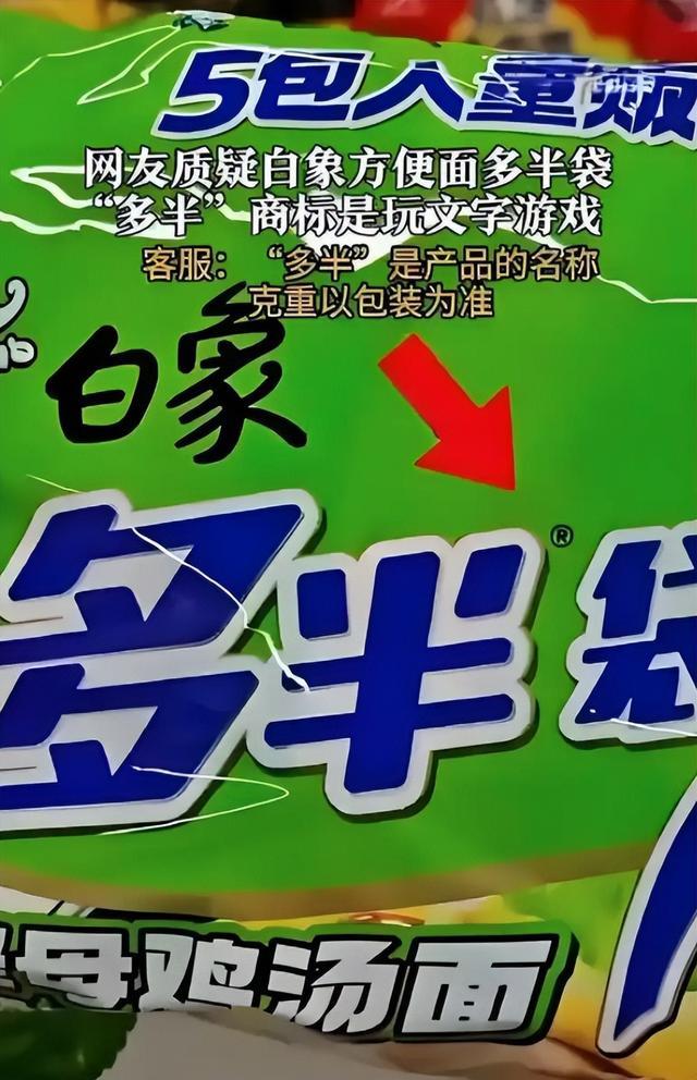 “千禾0”酱油、白象“多半”袋等就是案例,前者凭借零添加概念在市场中发展迅猛,消费者以为是零添加的高品质酱油,但实际上“0”并非数字意义上的“零添加”,而是一个货真价实的商标。后者也是如此,消费者看到“多半袋”的宣传会直观地认为方便面的分量比普通产品多很多,但实际并非如此。