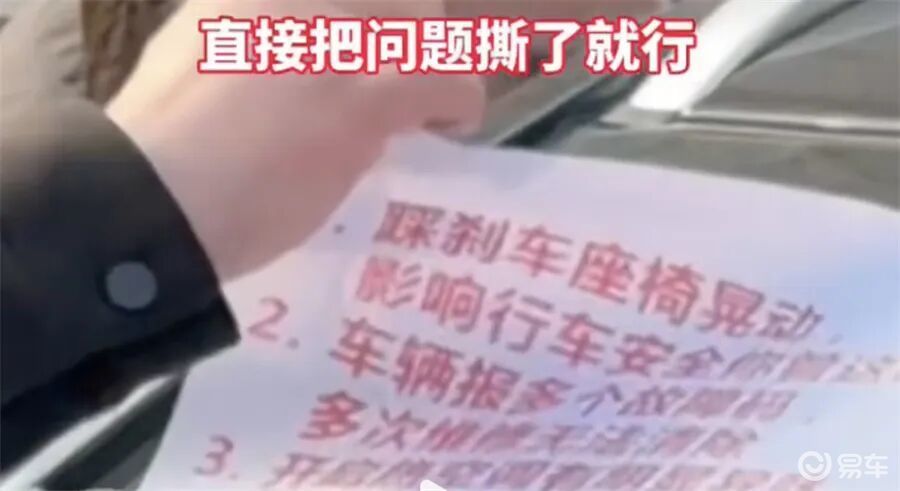 今年当之无愧的最佳名场面。某品牌工作人员面对贴满问题描述的维权车辆,上手就把纸给撕了。问题解决了吗?没有。但写着问题的纸没有了。好家伙,这要是放考场上,相当于不会做题直接撕卷子——只要没有题,就没有不及格。
